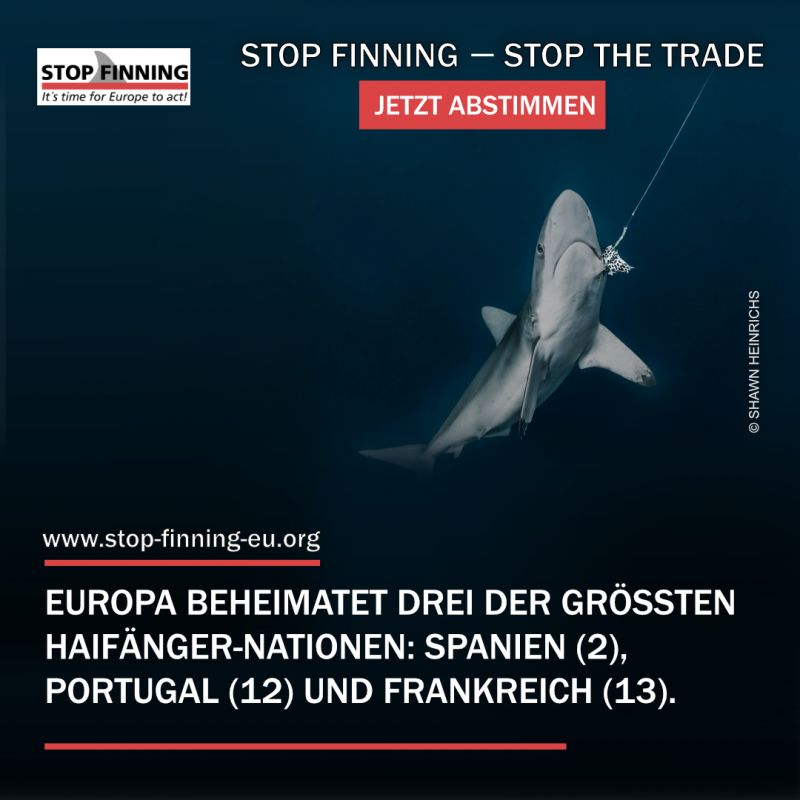 Der Handel mit abgetrennten Haiflossen in der EU muss verboten werden. Da die Haie hauptsächlich wegen ihrer Flossen gejagt werden, wäre auch zu hoffen, dass so auch der Handel ihres Fleisches sinkt. Damit würde Jagd auf sie deutlich abnehmen. Seit 2012 besteht in der EU die Möglichkeit, sich mit einer europäischen Bürgerinitiative direkt an die Europäische Kommission zu wenden und Gesetzesänderungen anzuregen. Insgesamt müssen in so einer Initiative mindesten eine Millionen Unterschriften innerhalb eines Jahres zusammenkommen. Die benötigte Mindestanzahl beträgt etwa das 750-fache der Anzahl der Mitglieder des Europäischen Parlamentes dieses Staates – in Deutschland sind es so 72.000 Unterschriften. Wird die benötigte Anzahl an Unterschriften innerhalb des Zeitraums erreicht, so besteht für die Europäische Kommission Anhörungspflicht und der Bürgerausschuss kann seine Initiative bei einer öffentlichen Anhörung im Europäischen Parlament vorstellen. Innerhalb von drei Monaten wird die Europäische Kommission anschließend eine Antwort über das weitere Vorgehen geben. Bisher sind etwa 20% der nötigen Unterschriften erreicht. Daher ist Ihre Unterschrift so wichtig. Bitte unterzeichnen Sie online die Initiative und teilen Sie sie mit Familie und Freunden: https://eci.ec.europa.eu/012/public/#/screen/home