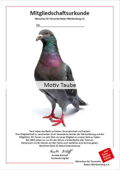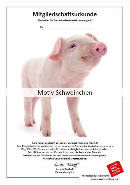 Wenn Sie eine Mitgliedschaft verschenken möchten, können Sie das unter folgendem Link machen. Bitte tragen Sie ihren eigenen Namen ein. In dem Feld "Nachricht" dann bitte, das Wort "Geschenkmitgliedschaft", den Namen der beschenkten Person und das gewünschte Motiv (Schweinchen, Taube, Familie Huhn etc.). Wir schicken Ihnen dann das PDF mit dem Namen der Person zu, sodass Sie es selbst ausdrucken können bzw. als PDF via E-Mail an den*die Beschenkte*n weiterleiten können.