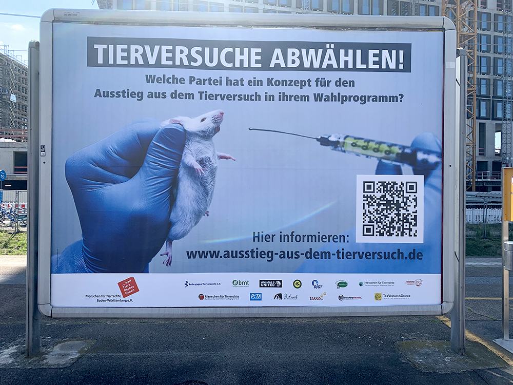 Begleitend zur bundesweiten Plakat-Kampagne „Ausstieg aus dem Tierversuch. JETZT!“ die wir in einigen Städten finanziert haben, starten wir einen Informationstag rund um das Thema Tierversuche.