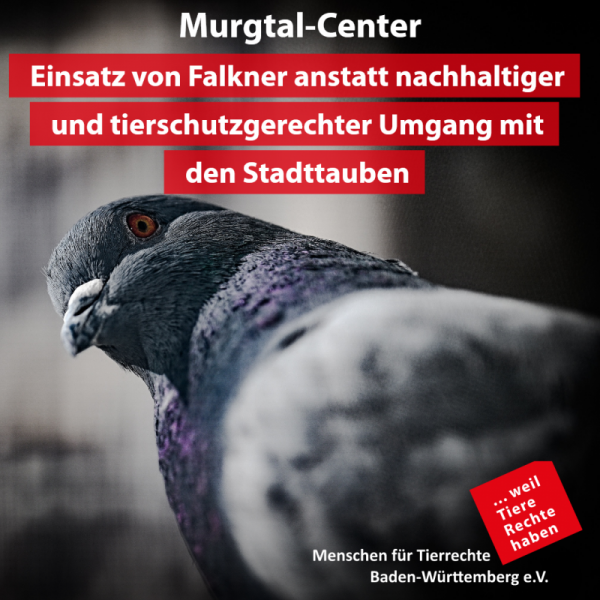 Murgtal-Center – Einsatz von Falkner anstatt nachhaltiger und tierschutzgerechter Umgang mit den Stadttauben – Menschen für Tierrechte Baden-Württemberg schreibt Inhabern des Einkaufzentrums