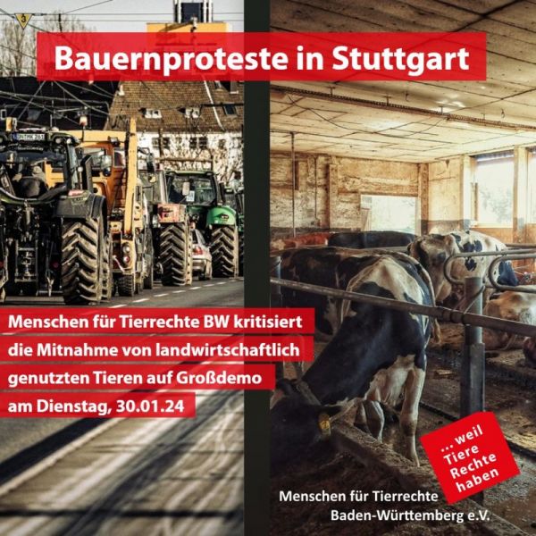 Bauernproteste in Stuttgart - Menschen für Tierrechte Baden-Württemberg kritisiert die Mitnahme von landwirtschaftlich genutzten Tieren auf Großdemo