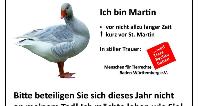 „Die Gänse haben Sankt Martin verraten, dafür müssen sie jetzt braten", heißt es im Volksmund. Der Legende nach versteckte sich der äußerst bescheidene und zurückhaltende Martin in einem Gänsestall, um der Bischofswahl zu entgehen. Die Gänse, in ihrer Ruhe gestört, begannen zu schnattern und Martin wurde in seinem Versteck gefunden. Dieser Erzählung ist es geschuldet, dass jedes Jahr Millionen Gänse getötet und am 11. November, dem Martinstag, verspeist werden.