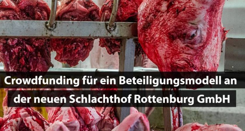 Die Traumtänzerei der Bürgerinitiative zum Erhalt des nur als Augiasstall zu bezeichnenden Schlachthofes Rottenburg erstaunt: Crowdfunding für ein Beteiligungsmodell an der neuen Schlachthof Rottenburg GmbH, keine Ertragszuwächse der sich Beteiligenden, als Ausgleich ein rabbatierter Einkauf tierquälerisch geschlachteter Tierprodukte – wie weltfremd kann man eigentlich sein?