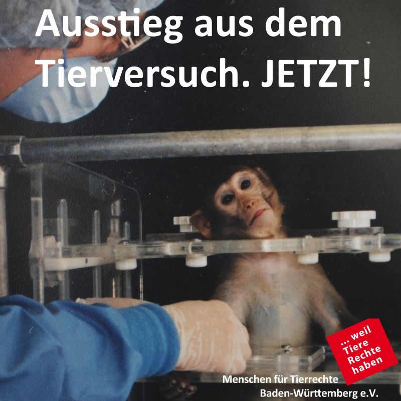 Menschen für Tierrechte Baden-Württemberg fordert daher von allen Parteien einen Ausstiegsplan aus dem Tierversuch in ihren Wahlprogrammen und fordert auch die Bürger*innen auf, Einfluss auf die Politik zu nehmen. Die Wahlen bieten dafür eine besonders gute Gelegenheit. Im Jahr 2020 wurde mit diesem Ziel auch ein Bündnis aus insgesamt 15 Tierschutz- und Tierrechtsvereinen gegründet und die gemeinsame Kampagne „Ausstieg aus dem Tierversuch. JETZT!“ gestartet (2). Außerdem haben wir Baden-Württembergs Wissenschaftsministerin Bauer einen Brief anlässlich des Internationalen Tags zur Abschaffung der Tierversuche geschrieben und um konsequente Schritte für einen Ausstieg aus dem Tierversuch in Baden-Württemberg gebeten. So zum Beispiel, dass keine weiteren Versuche an Primaten mehr genehmigt werden. Schließlich werden Primatenversuche im Wahlprogramm abgelehnt, finden aber dennoch weiterhin in Tübingen statt.