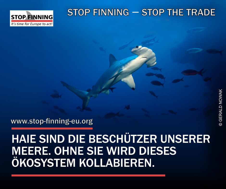 Die europäische Bürgerinitiative STOP FINNING - STOP THE TRADE (www.stop-finning-eu.org) fordert ein Ende des Haifischflossenhandels in Europa. Die Initiative wird vertreten durch Nils Kluger (Stop Finning Deutschland e.V.) und Alex Cornelissen (Sea Shepherd Global) und wird von mehr als 100 Umwelt- und Tierschutzorganisationen unterstützt. Europaweit werden Stimmen gesammelt, um eine entsprechende Gesetzesänderung im Europäischen Parlament einzubringen. Weitere Informationen finden Sie unter stop-finning-eu.org.