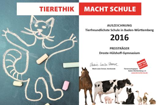 TierEthik macht Schule in Meersburg: Anfang Mai hat der Landesverband MENSCHEN FÜR TIERRECHTE das Droste-Hülshoff-Gymnasium in Meersburg als tierfreundlichste Schule in Baden-Württemberg in 2016 ausgezeichnet. Neben der Urkunde erhält die Schule ein Preisgeld von 1000 Euro.